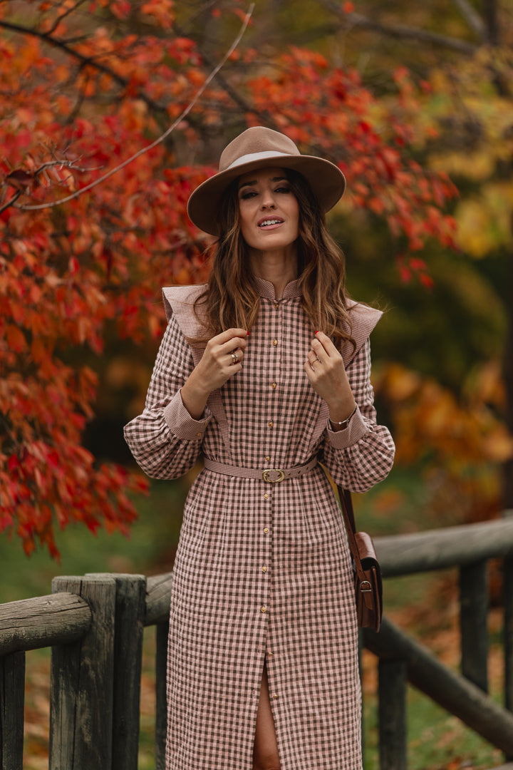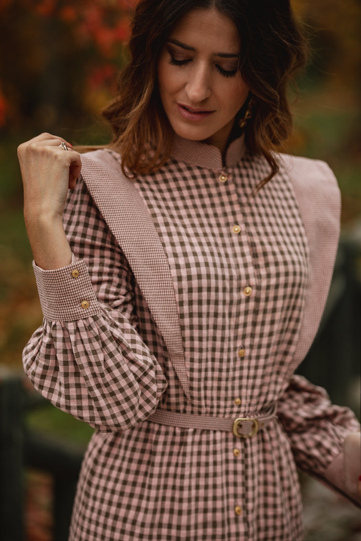 El vestido casual rosa MARLON que combina cuadros de vichy es una prenda esencial para cualquier ocasión. Con alerones laterales, mangas largas y puños ajustados mediante botones, este vestido incorpora un cinturón al tono y botonadura frontal aportando un toque perfecto tanto para looks formales como para un estilo casual chic, ideal para combinar con una amplia variedad de conjuntos.